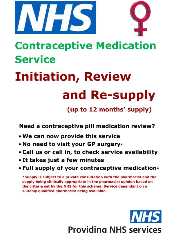 • Ongoing supply of oral contraception: We can supply you with repeat prescriptions for your existing oral contraception from the pharmacy, without you needing to go to your GP or sexual health clinic.